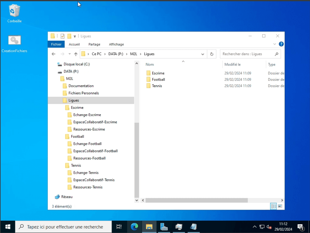Maintenant que le serveur de fichiers SRV-FIC est prêt, nous devons définir une structure pour l’arborescence de ce serveur.