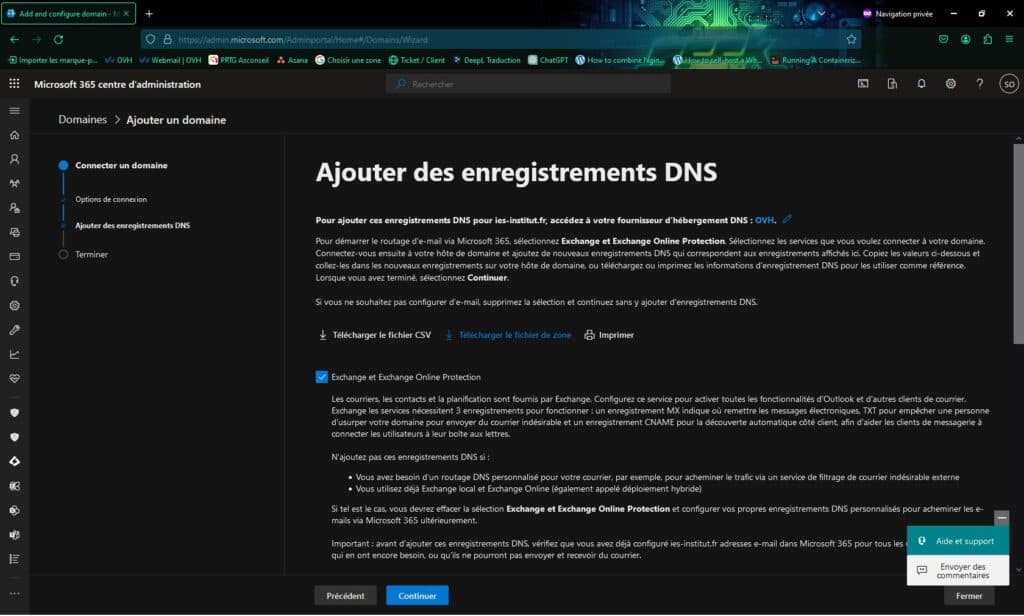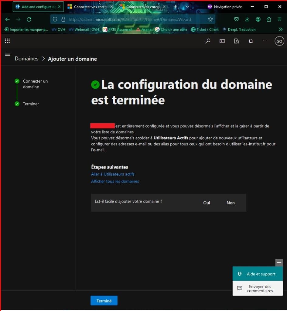 • Les enregistrements MX OVH existants ont été supprimés.