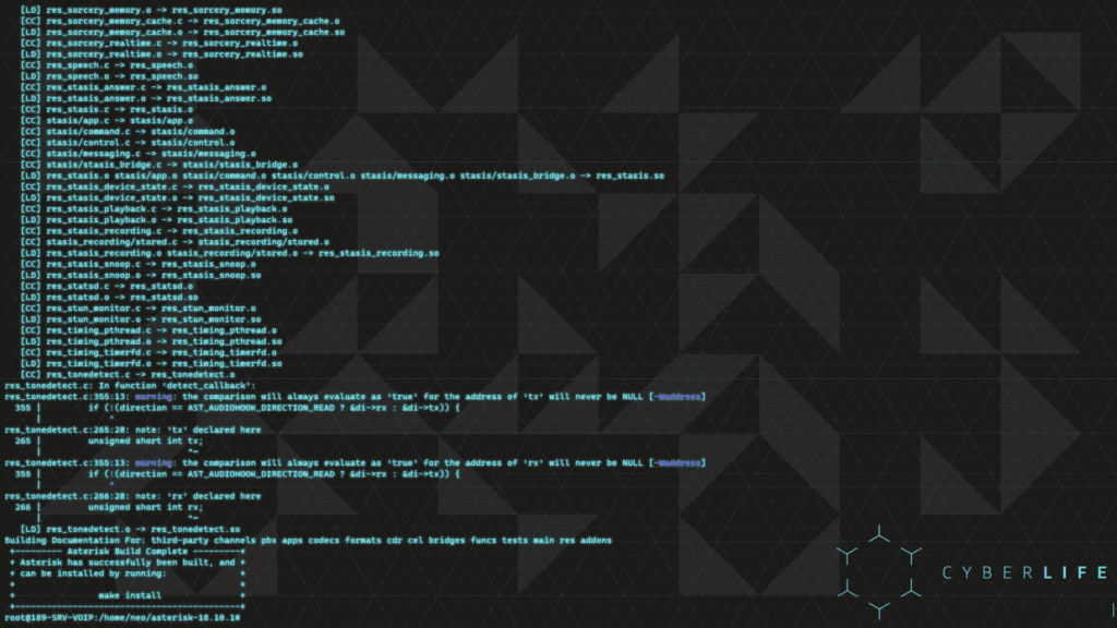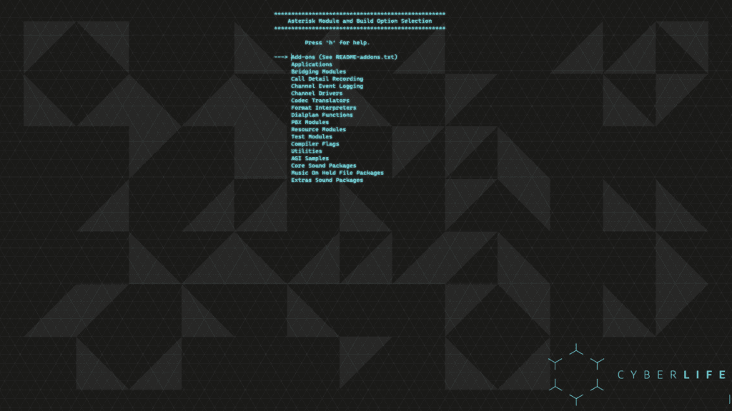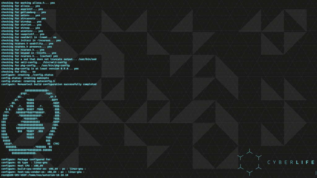 Nous avons extrait les fichiers compressés, supprimé l’ancien fichier compressé, navigué dans le dossier asterisk et exécuté le script ./configure. Nous saurons que c’est terminé lorsqu’il affichera le logo :