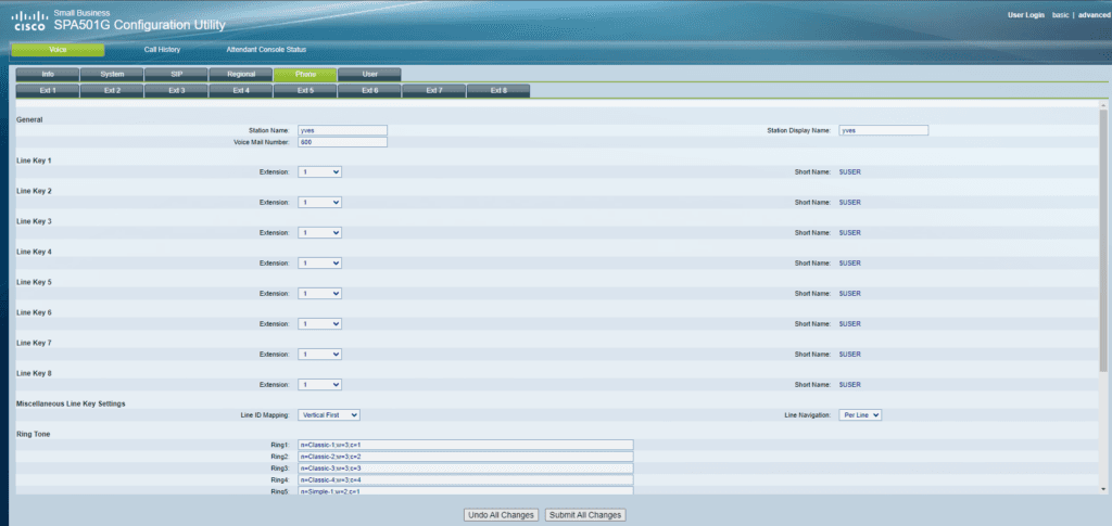 Dans l’onglet « Téléphone », j’ai attribué les lignes et les utilisateurs en entrant le nom de la station, le nom d’affichage de la station et le numéro de la boîte vocale correspondant à l’utilisateur.