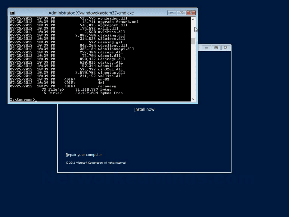 Une fois dans l’installateur, tout ce que je dois faire est d’appuyer sur SHIFT+F10 et j’ai une console dans laquelle je peux travailler.